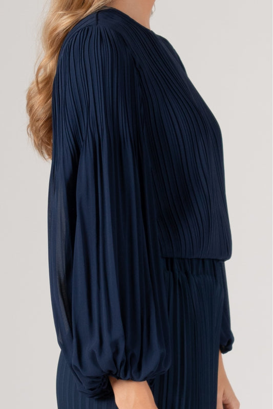 Pleated Chiffon Top | Navy