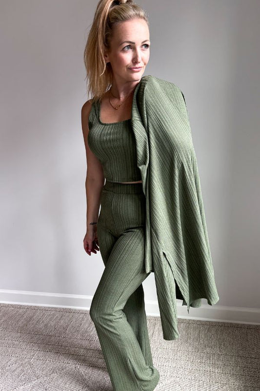 3 Piece Rib Knit Set | Olive