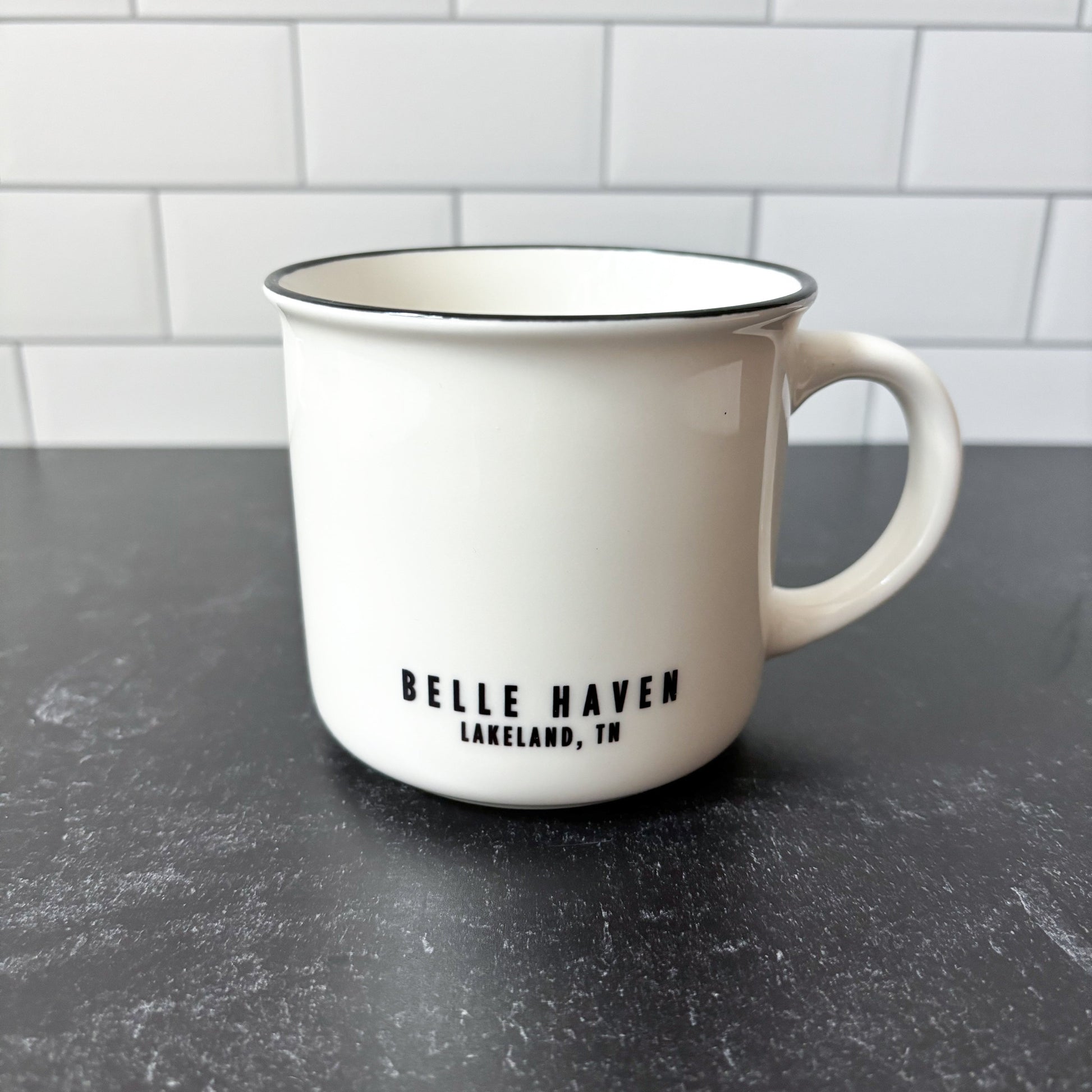 This classic camper mug is the perfect gift for the Lakeland community. The ceramic material and black lip add a touch of style, while it's 13 oz size makes it great for everyday use. Exclusive to Belle Haven, you won't find this unique mug anywhere else.