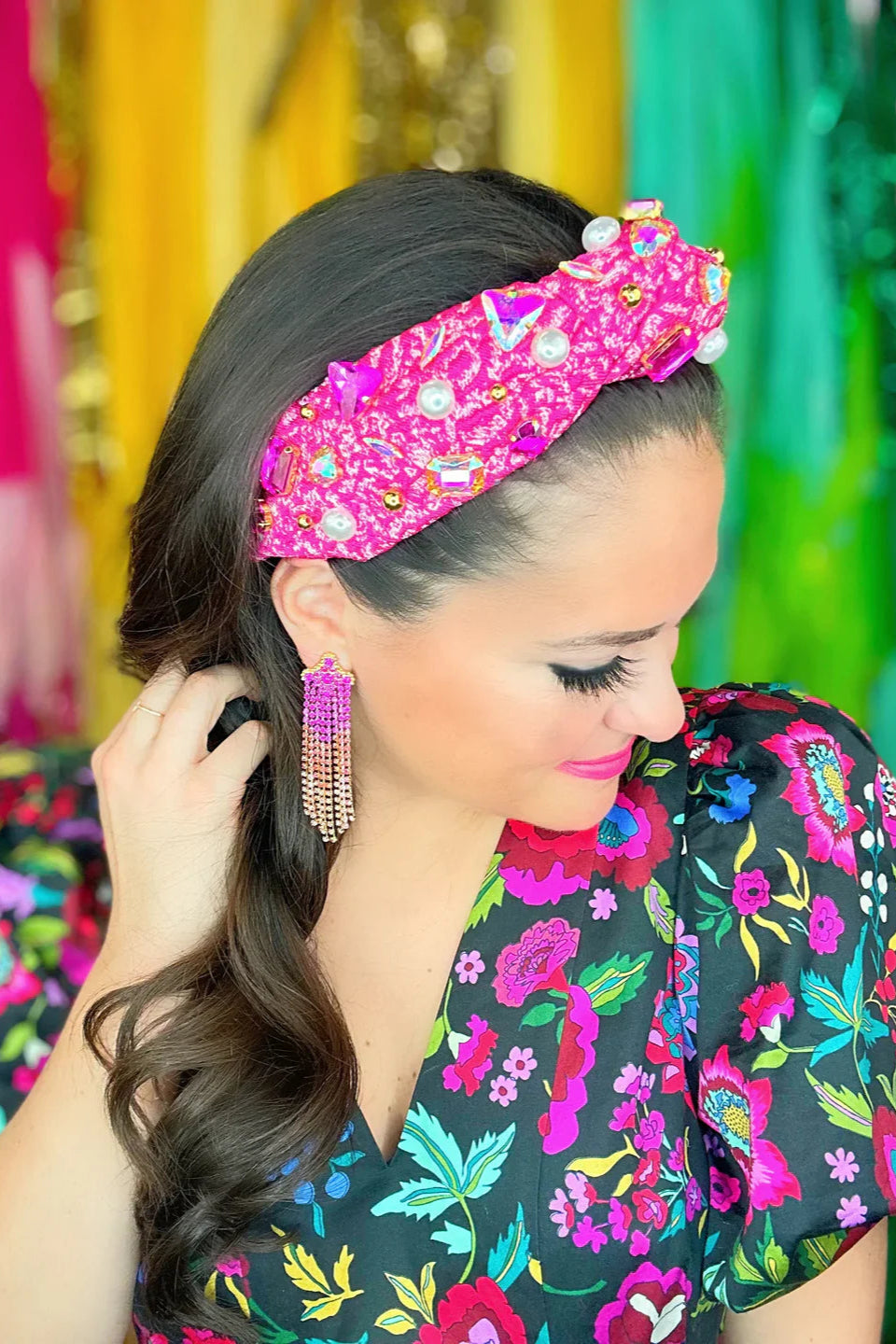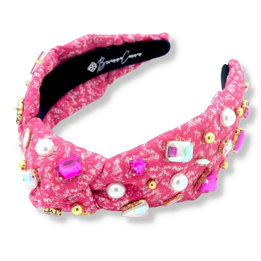 Brianna Cannon Pink Textured Headband with Crystals + Pearls