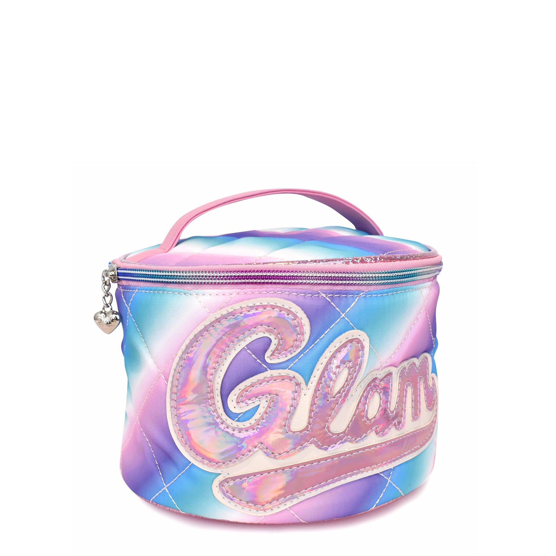 Fancy up their glam time routine with this mesmerizing glam bag! Featuring a shiny retro-inspired script 'Glam' patch; pastel ombre print; and large interior, this cosmetic case is the best bag to give to your beauty (and we think they'll agree)!