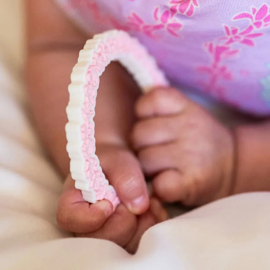 - Textured Relief: Thoughtfully textured with gentle ridges and nubs, our teether soothes sore gums and eases discomfort during teething.