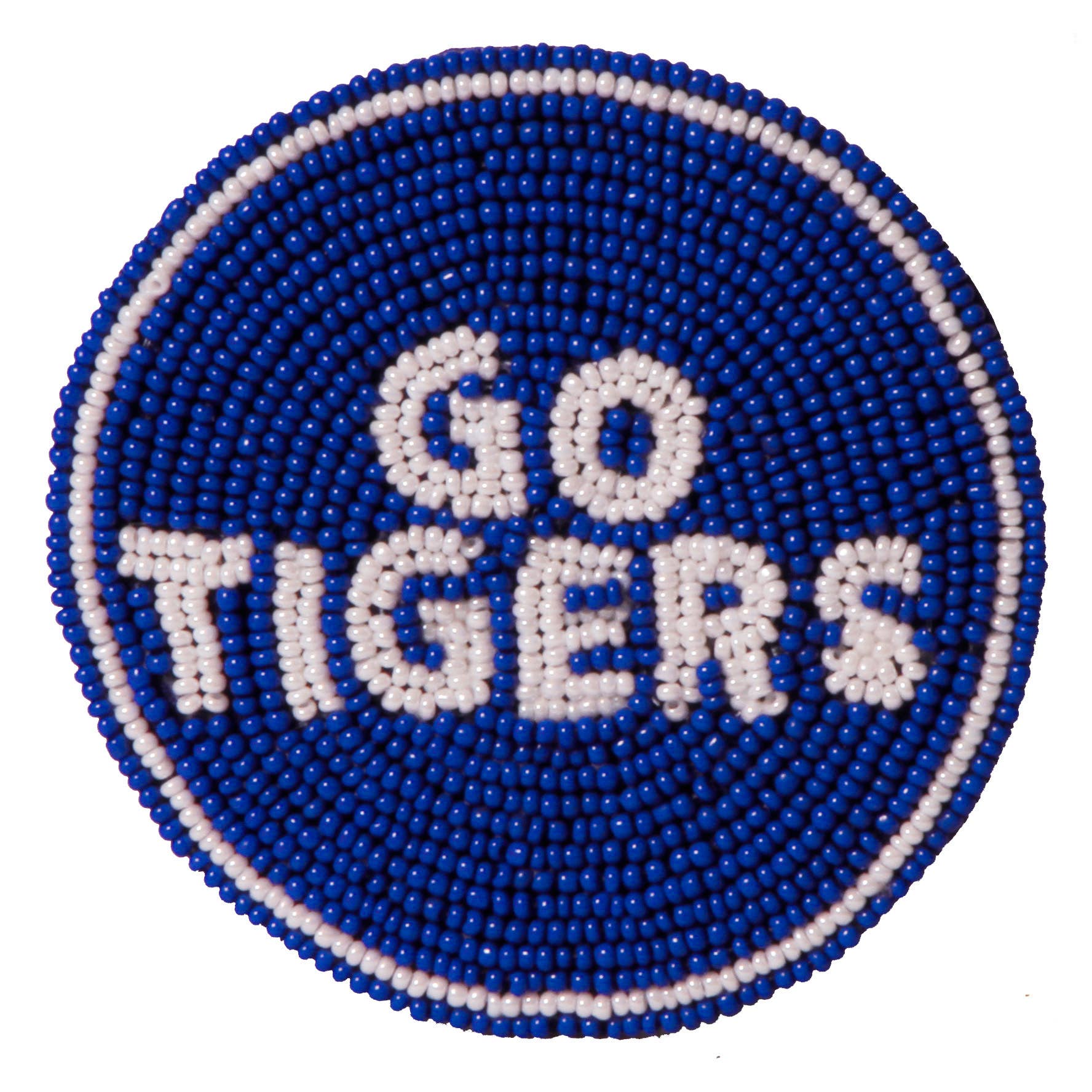 Show off your team spirit with the Memphis Go Tigers Beaded Button in Royal and White. This unique button features the iconic Memphis Tigers logo in vibrant colors. Perfect for adding a touch of team pride to any outfit, this button is a must-have for any Tigers fan.