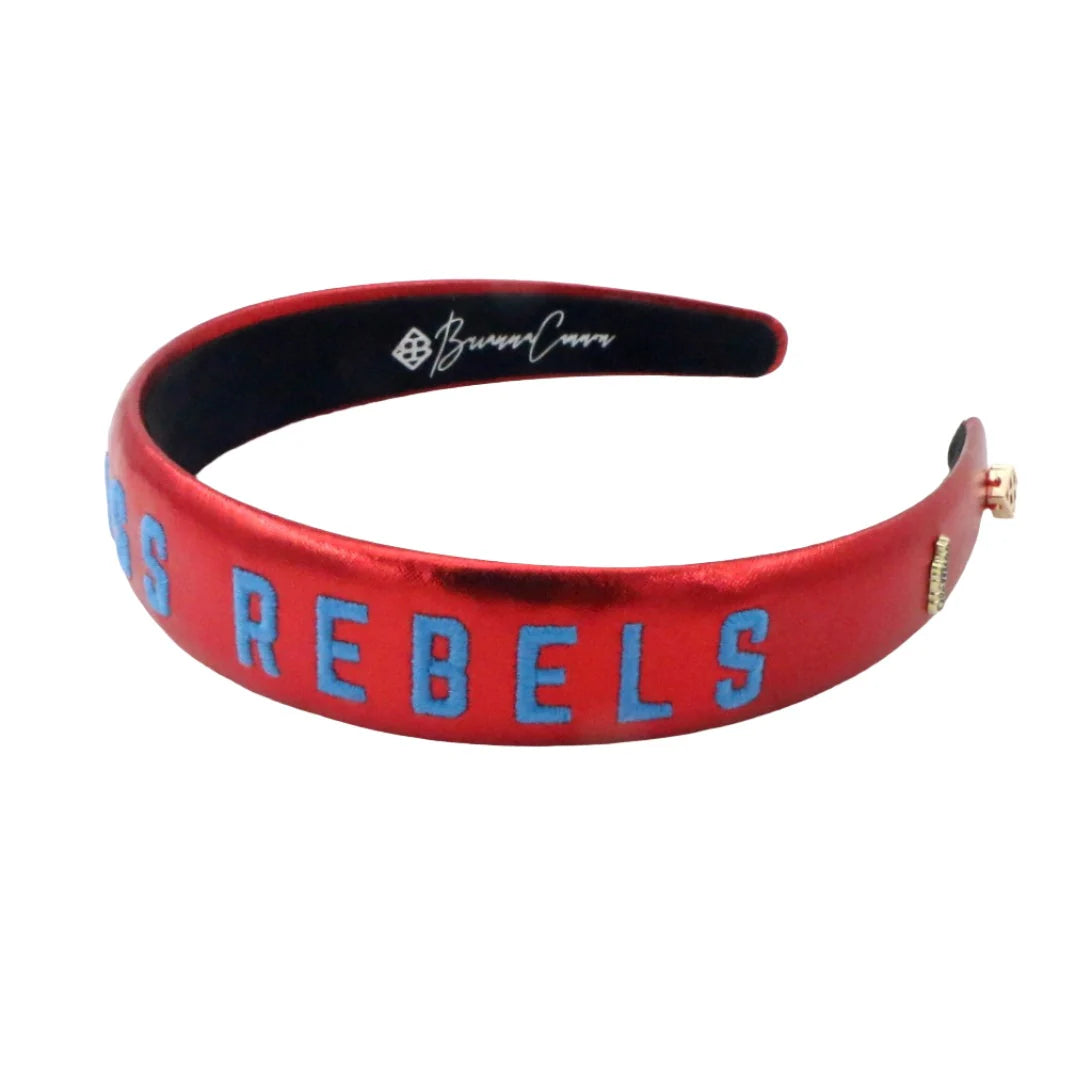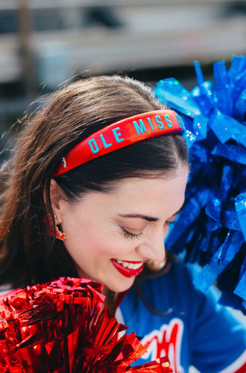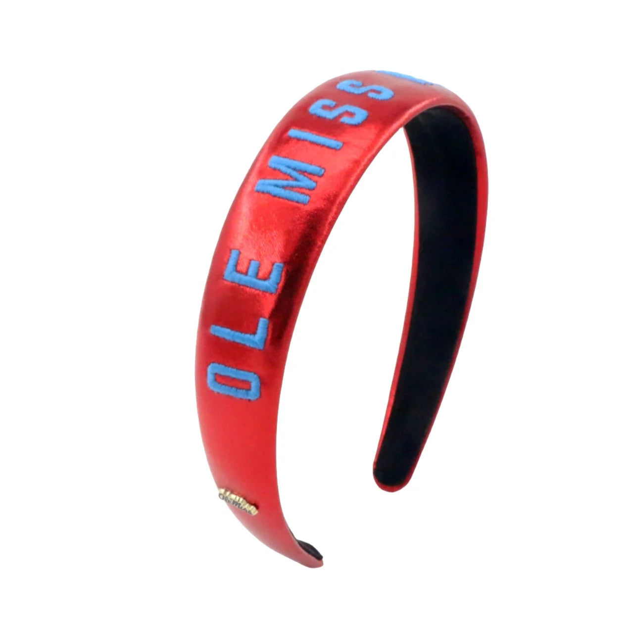 - Red Thin Ole Miss Headband with Powder Blue Embroidered OLE MISS REBELS