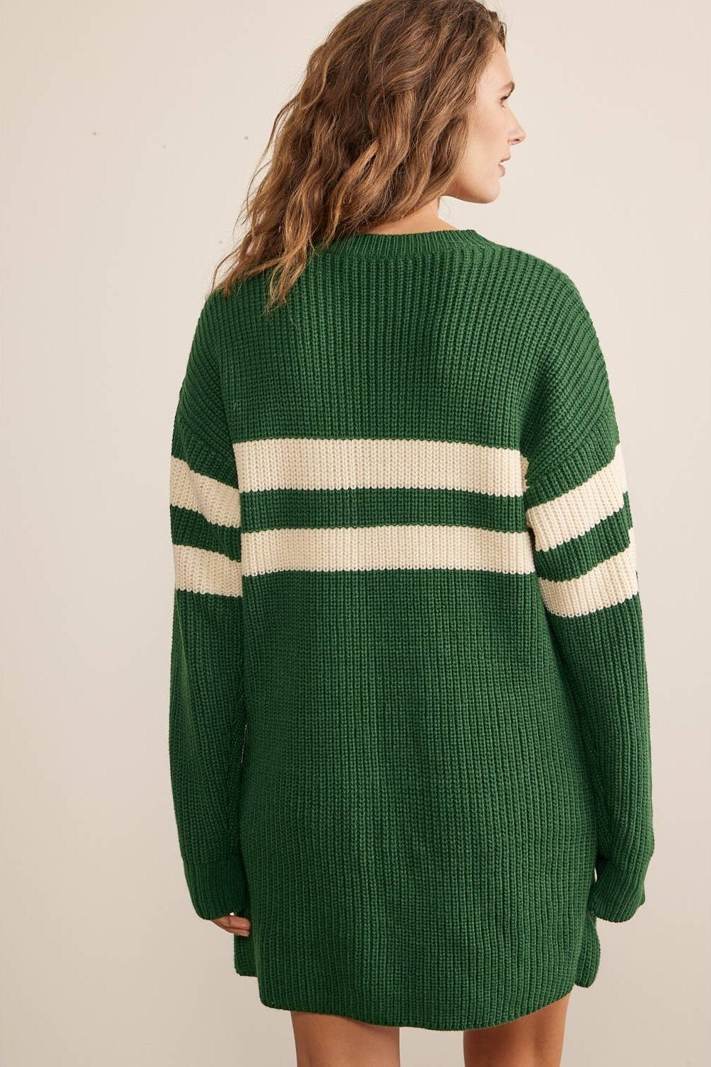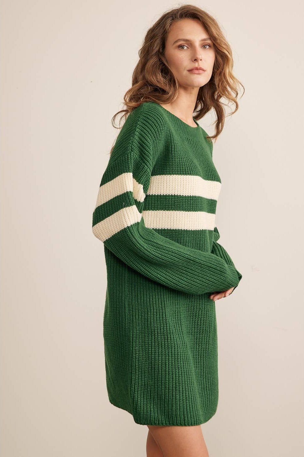 Our Chill Out sweater dress is an irresistibly cozy long-sleeved knit mini dress with a relaxed fit and a playful color blocked stripe accent. Lounge around the house or throw a pair of UGGs on for a comfortable going out style.